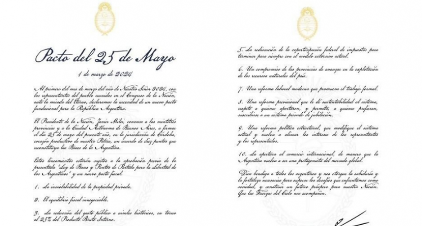 El gobernador de la provincia, Osvaldo Jaldo, se refirió al Pacto de Mayo, y dijo que lo acompañará. Los mandatarios provinciales se pronunciaron sobre el acuerdo impulsado por el presidente.