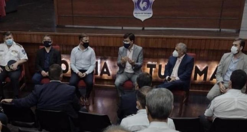 Osvaldo Jaldo, gobernador, junto al ministro de Seguridad, Eugenio Agüero Gamboa y el jefe de Policía, Manuel Bernachi, conversaron sobre los alcances de las acciones de prevención que se desarrollarán en diálogo con comerciantes y ciudadanos