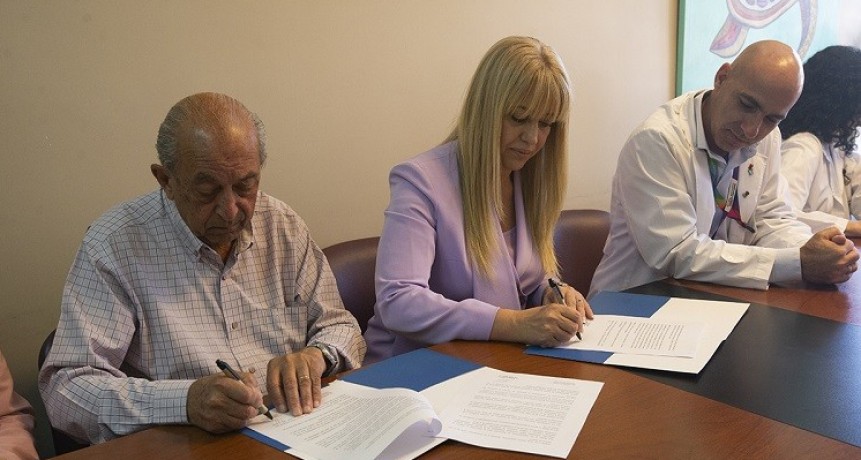 La ministra de Salud, Rossana Chahla; el presidente del Consejo de Administración del hospital de Pediatría S.A.M.I.C. “Prof. Dr. Juan P. Garrahan”, Carlos Kambourian; y Jorge V. Menehem, de la Fundación, en Buenos Aires rubricaron un convenio que tiene como objetivo promover y desarrollar acciones en forma conjunta para disminuir la morbilidad y mortalidad materno infantil, con la implementación de programas de colaboración, asistencia y capacitación