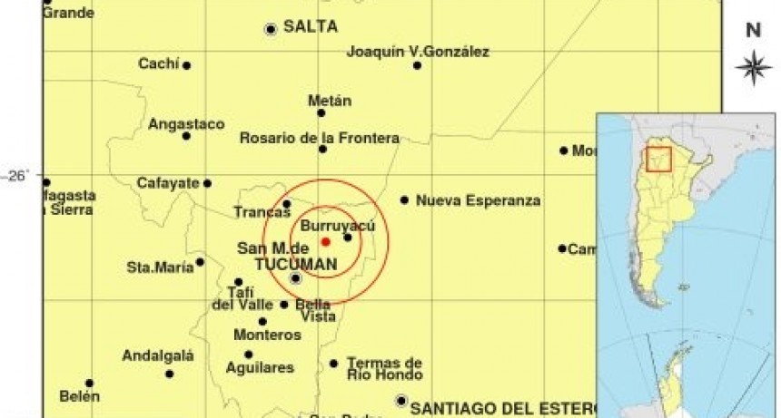 El sismo tuvo lugar pasadas las 13 hs. La ubicación fue a 7 kilómetros al Este de la Capital tucumana