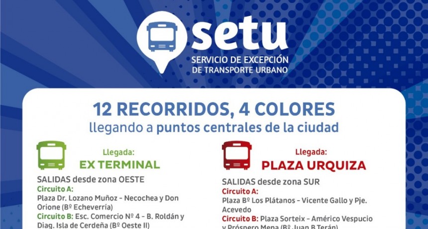 En total, funcionan 12 recorridos que cubren líneas de cuatro colores: Rojo, Azul, Amarillo y Verde. Los minibuses del SETU circularán hoy y mañana, de 7 a 19.30, en la Capital