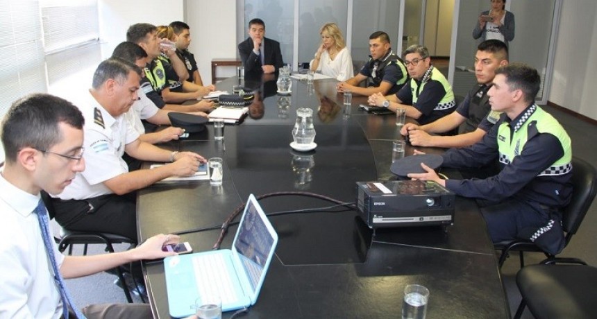 José Ardiles, subsecretario de Seguridad, y de Coordinación Institucional, Mariela Martín Domenichelli, mantuvieron una reunión de trabajo con efectivos de la Guardia Urbana, con el fin de intensificar el trabajo que se viene desarrollando en distintos barrios de la capital. Se llevara el programa relaciones con la comunidad al barrio Oeste II, ATE y Villa 9 de Julio