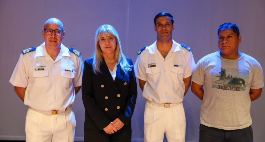 La jefa municipal participó de la conferencia “La vida a bordo de un submarino”, a cargo del capitán Gabriel Viana, quien salvó su vida debido a que fue reemplazado antes de la tragedia. En el homenaje estuvieron presentes los familiares del cabo Luis García, uno de los dos tucumanos, junto al capitán Juan César González, que formaban parte de la tripulación