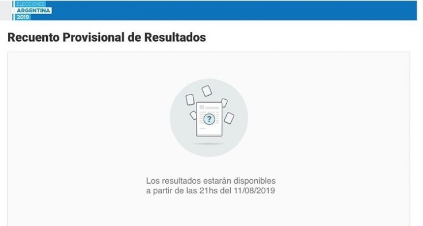 El ministro de gobierno de la Nación, Rogelio Frigerio, en conferencia de prensa confirmó que no se difundirán los primeros datos del escrutinio de hoy, hasta que no se haya cargado el 10 por ciento de los votos de las cuatro jurisdicciones establecidas por la Justicia Electoral, Ciudad y Provincia de Buenos Aires, Córdoba y Santa Fe