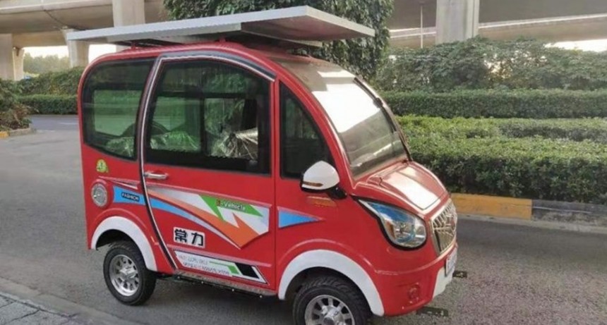 Es Chino, mide solo 2,5 metros de largo por 1,5 de ancho y 1,8 de alto. Puede cargar 300 kilos, y trae radio, ventilador y calefacción