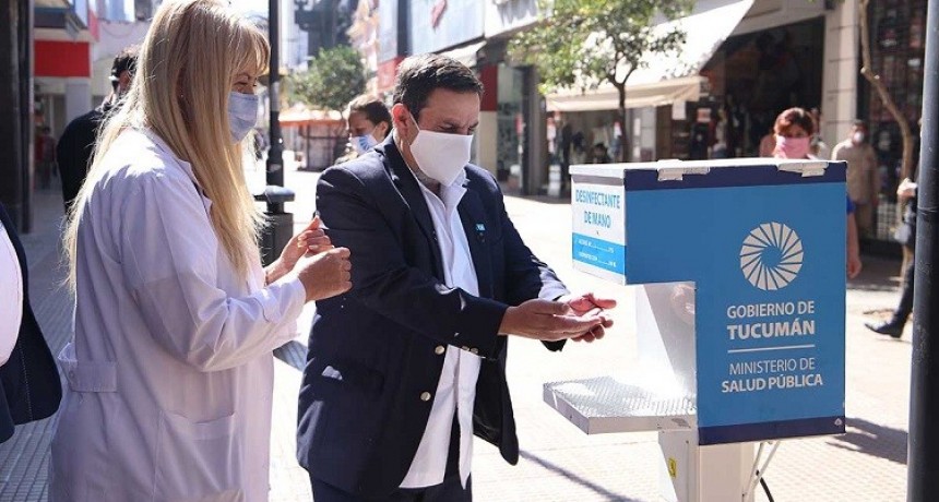 En el microcentro tucumano se instalaron sanitizantes de manos