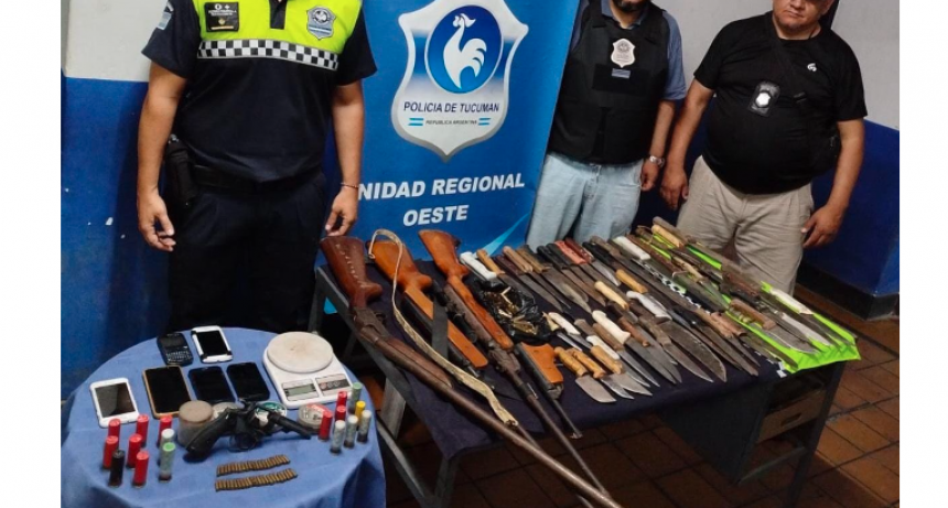 Personal de la Unidad Regional Oeste incautó más de 100 plantines de marihuana, 60 cuchillos, armas de fuego y municiones en una serie de allanamientos realizados en domicilios de Famaillá, por una causa de robo.