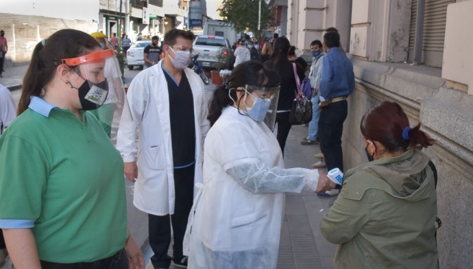 También indicó: “En el centro de la ciudad hay 11 centros de pago que llevan a que se generen aglomeraciones importantes de gente que va a cobrar sus sueldos, jubilaciones o planes sociales, y es en esas filas donde se produce la búsqueda de febriles. También pusimos un puesto fijo en Muñecas y Mendoza, en la peatonal, donde voluntariamente la gente puede acudir a tomarse la temperatura para conocer su estado de salud”.