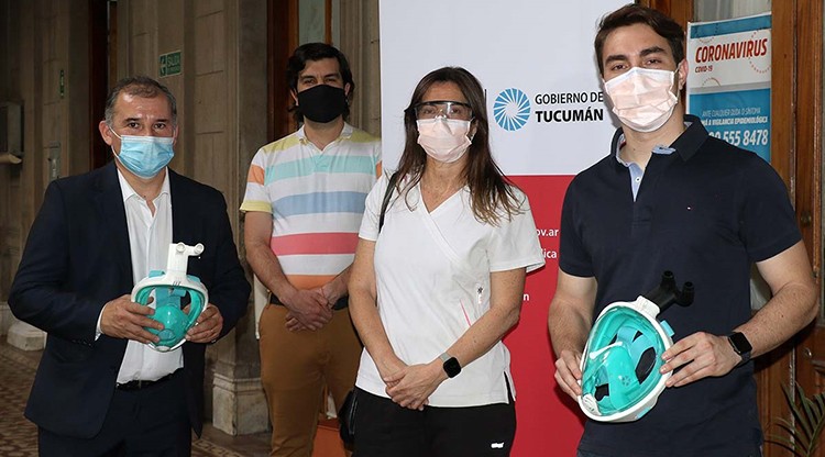 Quien investigó cómo se habían utilizado estas mascaras en Italia, fue Gabriela Apfelbaum, quien explicó: “Decidimos comprar una como iniciativa propia y trabajé junto a mi hijo Andrés varias tardes y noches hasta que logramos adaptar las válvulas que usaban los italianos al modelo disponible aquí en Tucumán. Inmediatamente nos pusimos en contacto con las autoridades del Ministerio de Salud que pusieron manos a la obra y entregamos máscaras para que las prueben en los hospitales con una repercusión muy importante”.