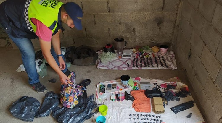 Se secuestraron 189 bagullos y un paquete de marihuana, una pistola calibre 22 con más de 50 cartuchos, balanzas de precisión, una licuadora y varios utensilios, por lo que se dio intervención a Dirección de Drogas Peligrosas Oeste.