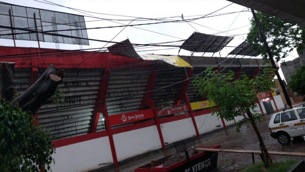 El temporal que azotó esta tarde a Tucumán provocó destrozos en varios puntos de la provincia. Uno de ellos fue el estadio de San Martín, donde parte de la cartelería y del sistema de iluminación quedó destrozado.