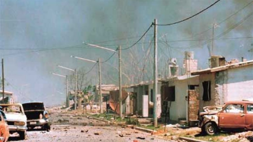 A las 9 de la mañana de un 3 de noviembre soleado de 1995, la ciudad de Río Tercero, Córdoba, comenzaba a ser sacudida por tres explosiones consecutivas e intencionales en las instalaciones de la planta local de Fabricaciones militares. La onda expansiva llegó a 5 kilómetros de distancia, y tras las detonaciones, 30 mil proyectiles cayeron sobre hogares y patios de escuelas, además de las bombas de guerra que terminaron diseminadas por toda la ciudad. Las personas huyeron como pudieron, algunos llegando hasta pueblos vecinos. El saldo de este evento fue de siete muertes, 300 personas heridas y daños en infraestructura millonarios.