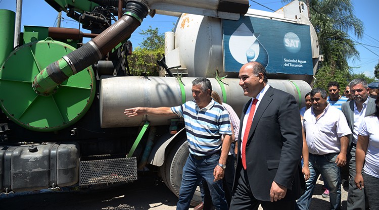 Manzur supervisó las obras que ejecuta la Secretaria de Saneamiento y Mejoramiento de Espacios Públicos, en conjunto con la Sociedad Aguas del Tucumán (SAT) en el barrio Villa Angelina, para renovar la red colectora cloacal.
