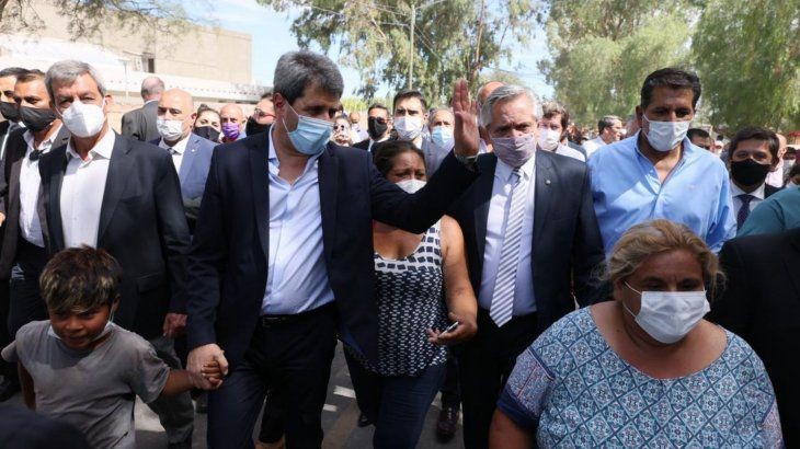 Junto con Uñac, Fernández recorrió los asentamientos Pellegrini y La Paz, donde habitan 240 familias. El sismo provocó el derrumbe del 40% de las viviendas y donde se concentrará el esfuerzo de reconstrucción. Tal como había indicado el gobernador, la clave para futuros eventos sísmicos es reemplazar los asentamientos por soluciones habitacionales, e indicó que en San Juan sólo quedaban seis barrios vulnerables, en vías de ser mudados.
