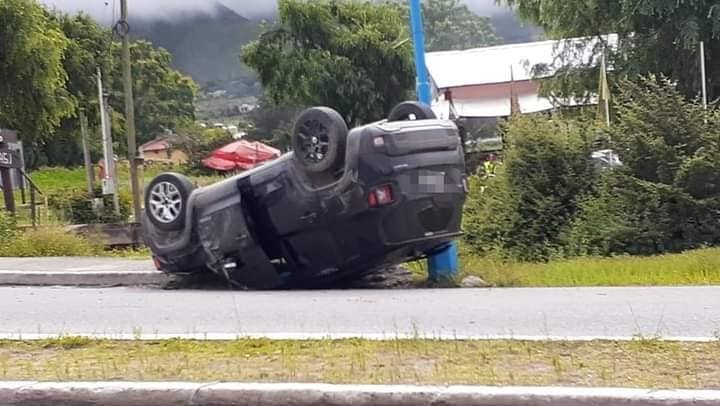 En el vechiculo de mayor rodado iban 4 adolescentes oriundos de los Bulacios. En tanto, el conductor del automóvil, empezó a discutir con los jóvenes que estaban dentro de la camioneta que estaba ruedas arriba.