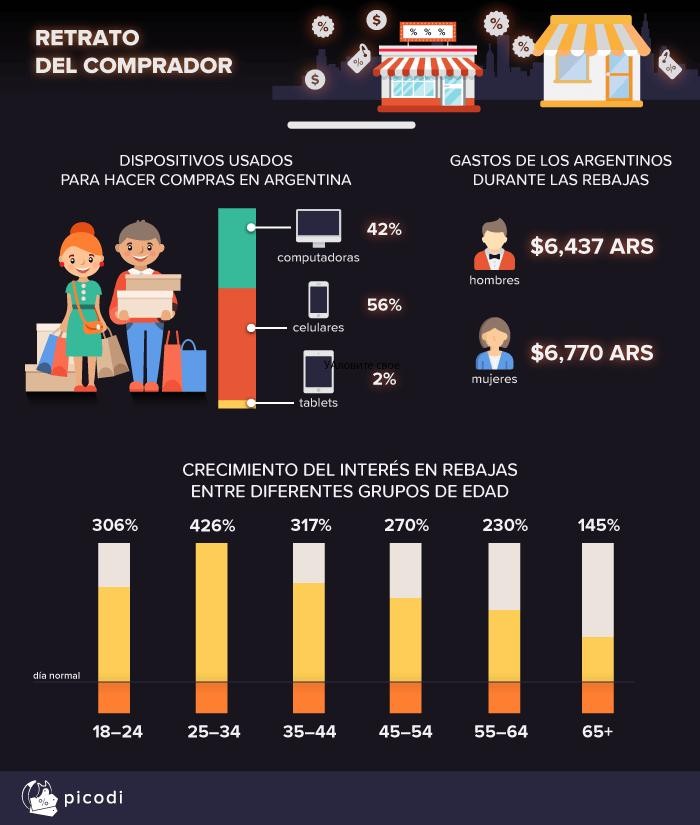 Según un relevamiento del portal de descuentos Picodi.com, el 28% de los argentinos -6% más que el año pasado- comprará en el Black Friday y gastará entre $ 6.400 y $ 6.700. El evento, asegura la encuesta, despierta más interés incluso que las versiones locales como Hot Sale y CyberMonday. Un dato interesante que arroja el sondeo es que menos del 40% ya tiene decidido qué va a comprar, mientras que la gran mayoría lo hará de forma "impulsiva".