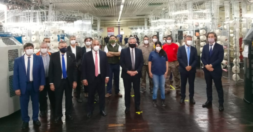 El presidente Alberto Fernández junto al gobernador Juan Manzur y el vicegobernador Osvaldo Jaldo visitaron la textil TN&Platex, ubicada en Las Piedritas, departamento Cruz Alta
