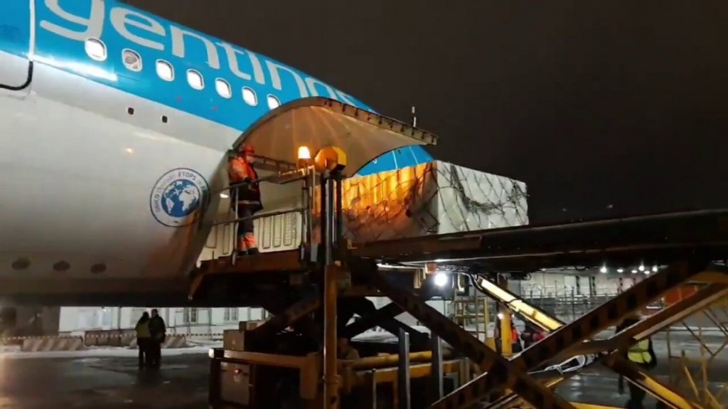 En las últimas semanas Aerolíneas Argentinas acondicionó el avión de la flota para poder traer hasta un millón de dosis. Será la primera vez que trae tantas dosis y todas en bodega. Esto es posible por el empaquetamiento de las dosis y porque no requieren frio como la sputnik v.