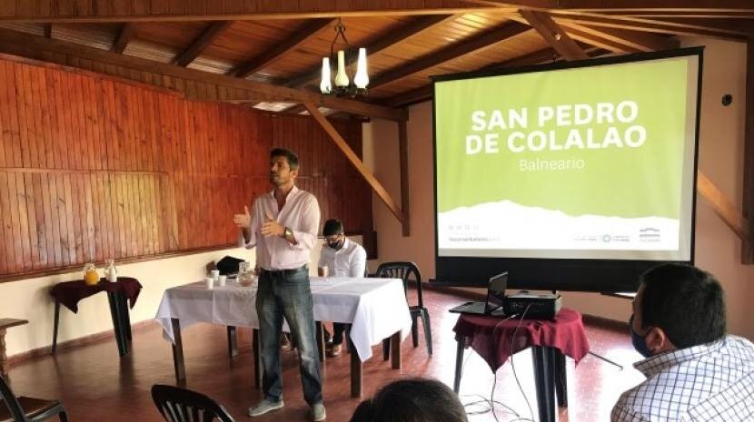 El presidente del Ente Autárquico Tucumán Turismo (EATT), Sebastián Giobellina, presentó en San Pedro de Colalao el proyecto de obras que se llevarán adelante en esa localidad, con el objetivo de transformar la infraestructura para potenciar su propuesta turística. Lo hizo en un salón de la hostería Los Lapachos, donde estuvieron presente el delgado de la comuna local, Walter Mamaní, y representes del sector hotelero y gastronómico.
