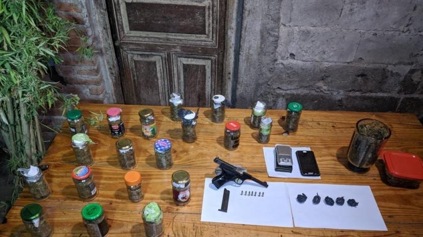 “Como resultado de la medida, encontramos un arma de fuego usada en el hecho. Además, numerosos frascos con sustancias vegetales y plantas que por sus características morfológicas y aromáticas serían marihuana, por lo que dio intervención a DIGEDROP (Dirección General de Drogas Peligrosas), a los fines de proceder a la incautación de estos elementos para ser puestos a disposición del Juzgado Federal N° 2”, detalló.