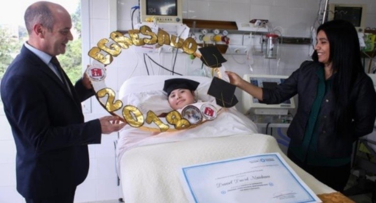 La historia de Daniel no es como la de cualquier niño que cursa sexto grado. Durante los primeros años de vida fue diagnosticado con una enfermedad llamada Atrofia Médula Espinal tipo II. Esto lo obligó desde 2011 a vivir de manera permanente en internación en la terapia intensiva del Hospital del Niño Jesús. Su situación de salud adversa no fue impedimento para que se eduque como cualquier persona en edad escolar, con un detalle especial: los médicos le daban un tiempo de vida de seis años, pero Daniel hace poco cumplió los doce.