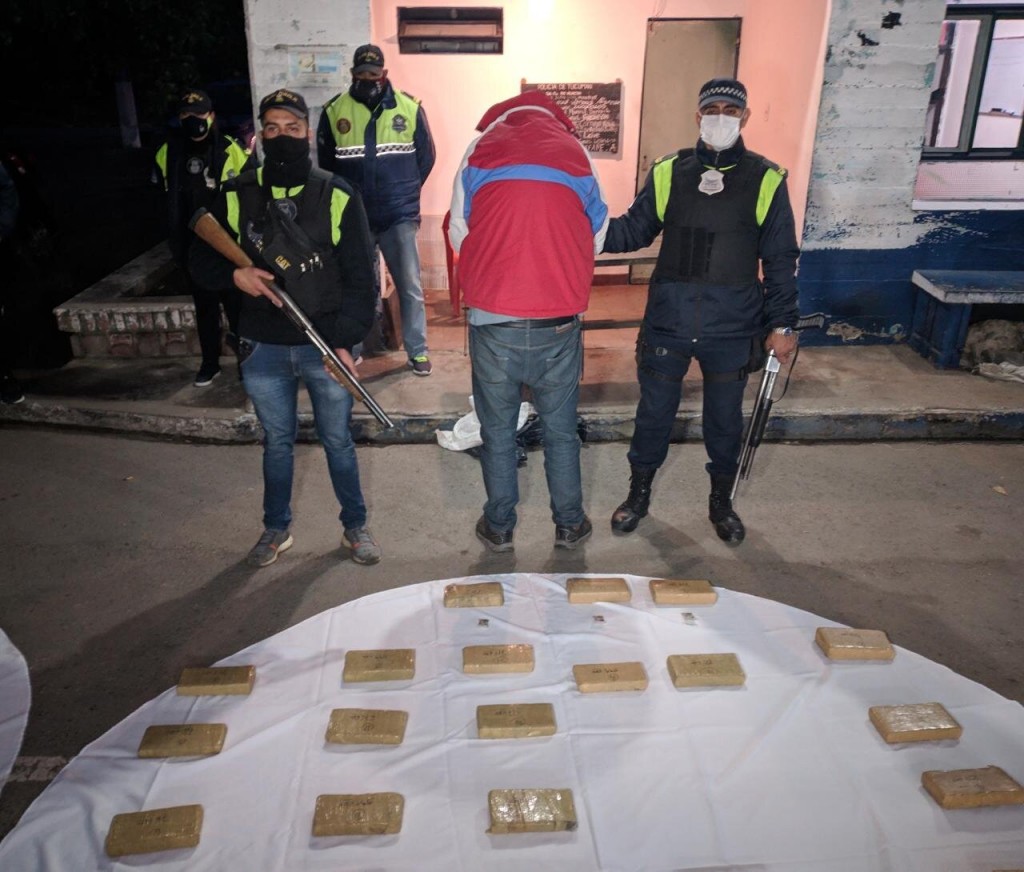 Llevaba la sustancia en el auto que funcionaba como taxi y fue interceptado en el control limítrofe de la localidad de Río Huacra por la Policía