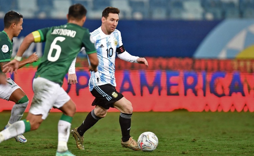 Sergio Kun Agüero improvisó un pase aéreo por encima de la adelantada defensa boliviana y entonces La Pulga quedó solo, mano a mano con Carlos Lampe y con la pelota picándole en frente. Como era de imaginarse, el capitán definió por arriba de del arquero y selló un tanto magnífico, el tercero suyo en el torneo en donde es, por ahora, el máximo artillero.