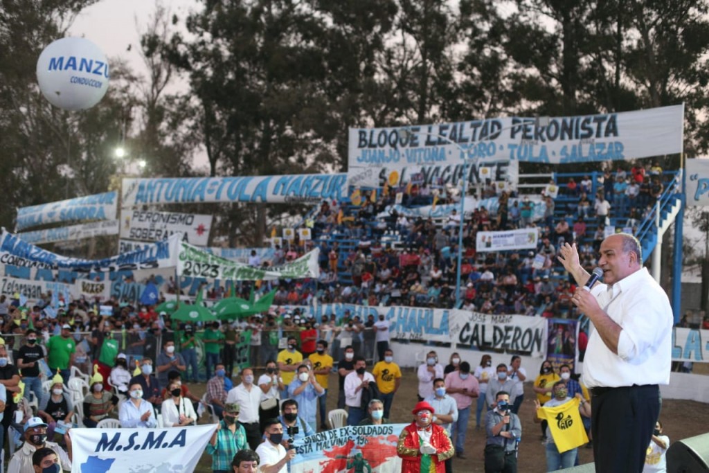 “Estoy contento, la dirigencia del peronismo de Alberdi está toda junta y está aquí. Los viejos nos enseñaron y nos decían ‘el peronismo unido jamás será vencido’. Y hoy estamos todos acá, como no voy a estar contento y feliz”, expresó esta tarde Juan Manzur ante una multitud que se dio cita en el estadio del Deportivo Marapa, en la ciudad de Alberdi, para brindar un fuerte apoyo a la conducción del presidente del Partido Justicialista de la Provincia (y vicepresidente del PJ a nivel nacional) y a los precandidatos del Frente de Todos, Lista Lealtad Peronista, con vistas a las Primarias Abiertas Simultáneas y Obligatorias (PASO) del próximo 12 de septiembre.