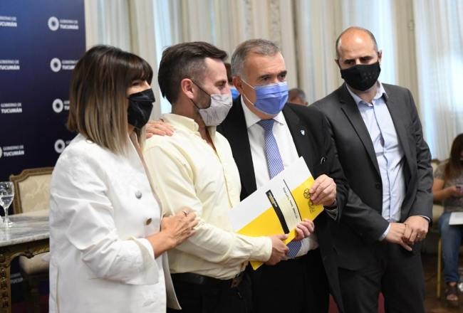 Vivimos un momento histórico que quedará grabado en el corazón de cada uno de ustedes, de los beneficiarios de los créditos Procrear. A partir de hoy, tendrán la posibilidad de cumplir el sueño del techo propio", destacó Jaldo durante la entrega que se realizó en el Salón Blanco de Casa de Gobierno.