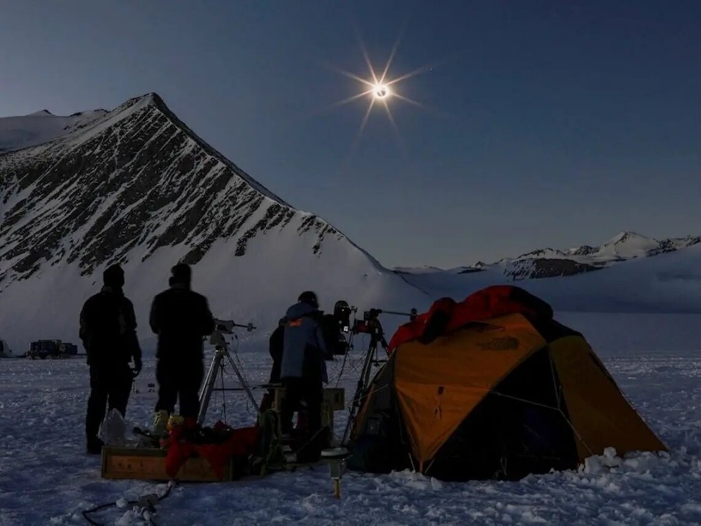 El día interminable durante el verano austral en la Antártida más profunda se vio interrumpido en la madrugada de este sábado por algo más de una hora de oscuridad provocada por un eclipse total de sol