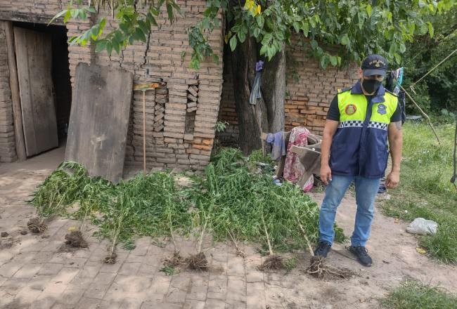 Efectivos de la Dirección General de Drogas Peligrosas (Digedrop) tomaron intervención en un procedimiento realizado este sábado por personal de la Comisaria El Timbo y lograron secuestrar ocho plantas de marihuana