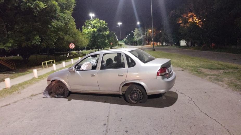 El vehículo presentaba daños materiales en la parte frontal y en sus cuatro ruedas. También se observaron daños en varios bloques de contención que se ubican en el sector externo de la rotonda.
