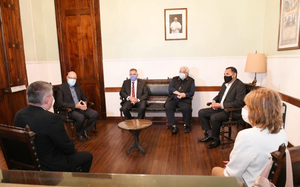 El gobernador, Osvaldo Jaldo, realizó una visita protocolar al Arzobispado de Tucumán, en avenida Sarmiento y Salta, donde fue recibido por el arzobispo, monseñor Carlos Sánchez y el obispo auxiliar, monseñor Roberto Ferrari.