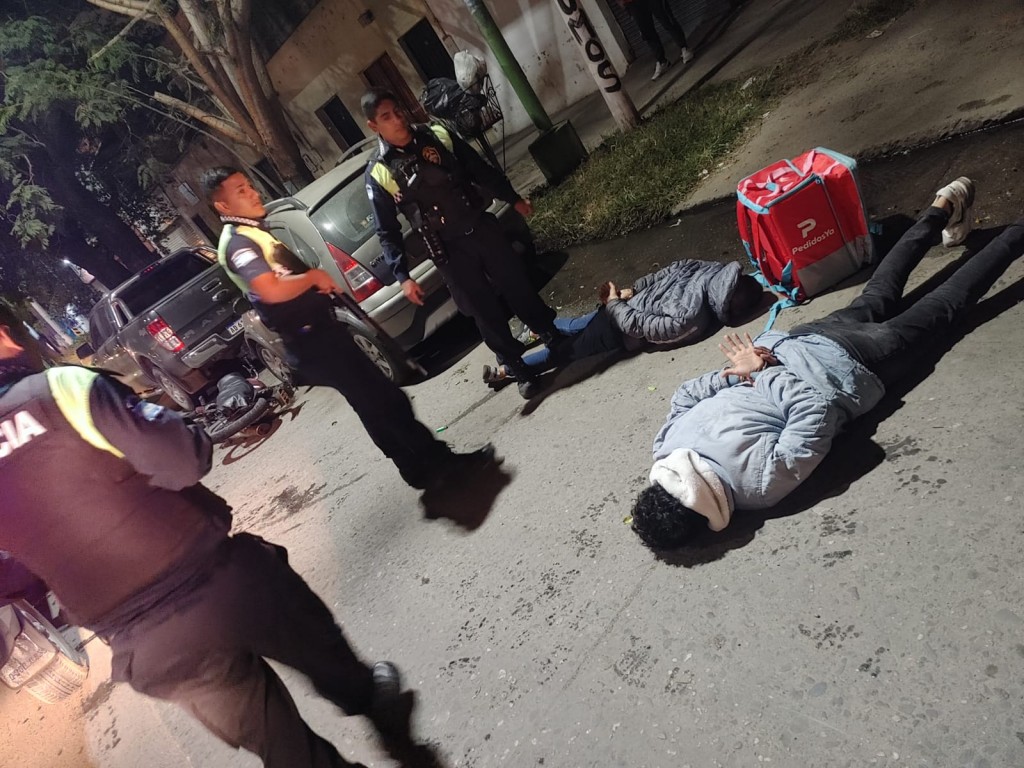 En la noche del miércoles, los efectivos policiales recorrían jurisdicción de la comisaría Quinta, cuando al llegar a calle Laprida y Méjico fueron alertados por una pareja de menores sobre dos desconocidos, que se trasladaban en una motocicleta con una mochila de Pedidos Ya, manifestando que los mismo los habían intentado asaltar amenazándolos con un arma de fuego.