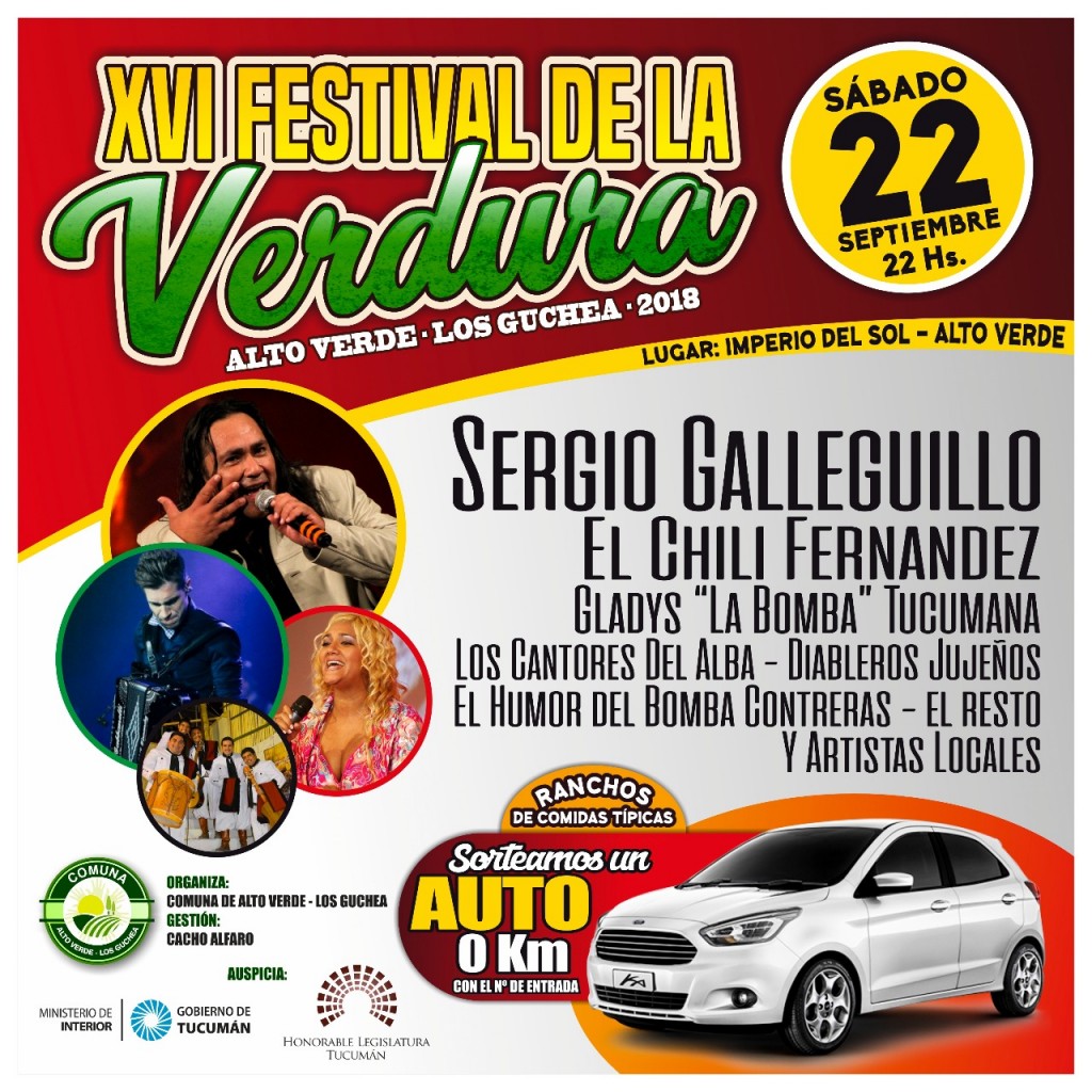 La decimosexta edición del Festival de la Verdura se realizará el sábado 22 de septiembre, en la localidad sureña de Alto Verde. El evento comenzará a las 22 horas y tendrá lugar en el Imperio del Sol.