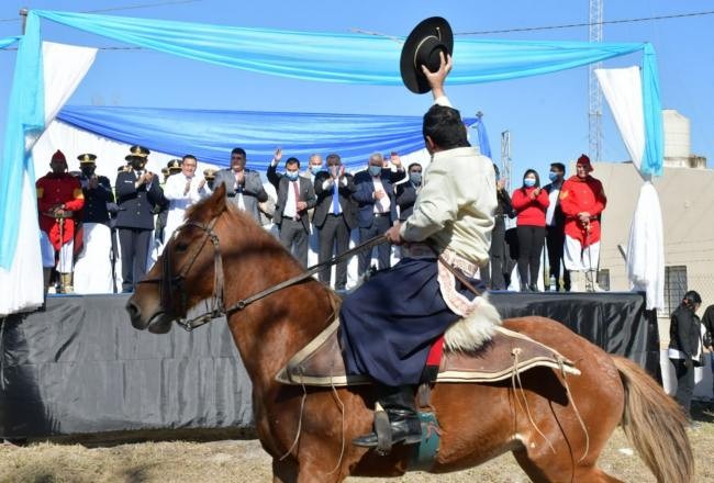 Esta mañana, Jaldo visitó el lugar, que lleva el nombre del prócer argentino, y participó de un desfile en homenaje al militar y político salteño