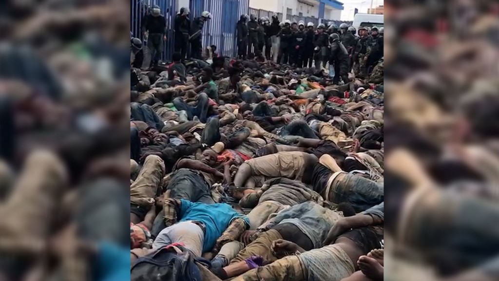 En ellos se ve a decenas de inmigrantes amontonados, aparentemente heridos o muertos, custodiados por policías marroquíes en el paso fronterizo del Barrio Chino de Nador. Estuvieron así durante horas, mientras iban llegando las ambulancias con cuentagotas.