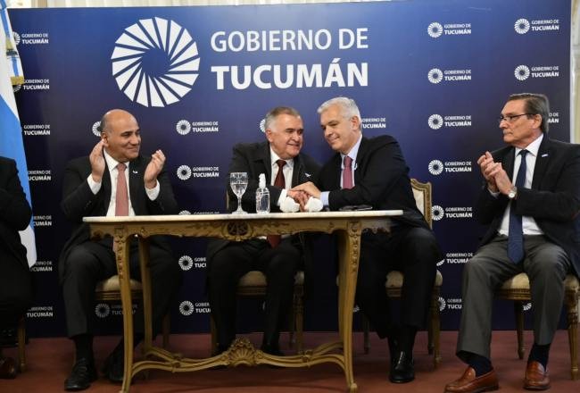 El gobernador, Osvaldo Jaldo, encabezó esta mañana en el Salón Blanco de Casa de Gobierno la firma de dos convenios entre la Provincia y el Ministerio de Agricultura, Ganadería y Pesca de la Nación, que conduce Julián Domínguez, por $400.000.000, de los cuales $120.000.000 estarán destinados al sector cañero y $280.000.000 serán para el sector ganadero.