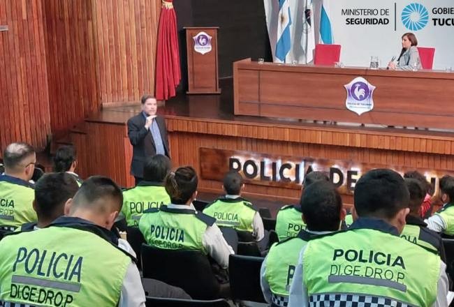 El objetivo del Ministerio de Seguridad, es que todos los efectivos policiales, de las diferentes áreas de la fuerza tengan el conocimiento necesario sobre narcomenudeo   al momento que comience a regir la Ley 9.188. En el auditorio Independencia, ubicado en la Subjeatura de Policía, disertaron titular de la Secretaria de lucha contra el narcotráfico, las psicólogas Mariana Goytia y Zulma Juri pertenecientes a la Secretaria de Políticas Integrales sobre adicciones.