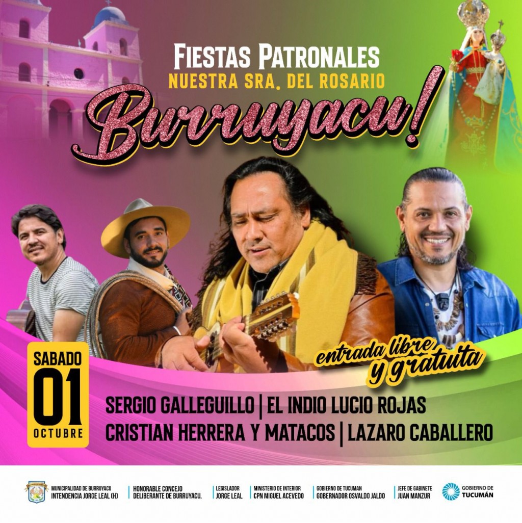 Se realizará en la cancha de Unión del Norte, desde las 17, el broche de oro será el show de Sergio Galleguillo. Organizado por la Municipalidad de Burruyacú, la entrada es libre y gratuita. Con la conducción de Naty Pachao y transmisión de La 97.1 Radio Tucumán