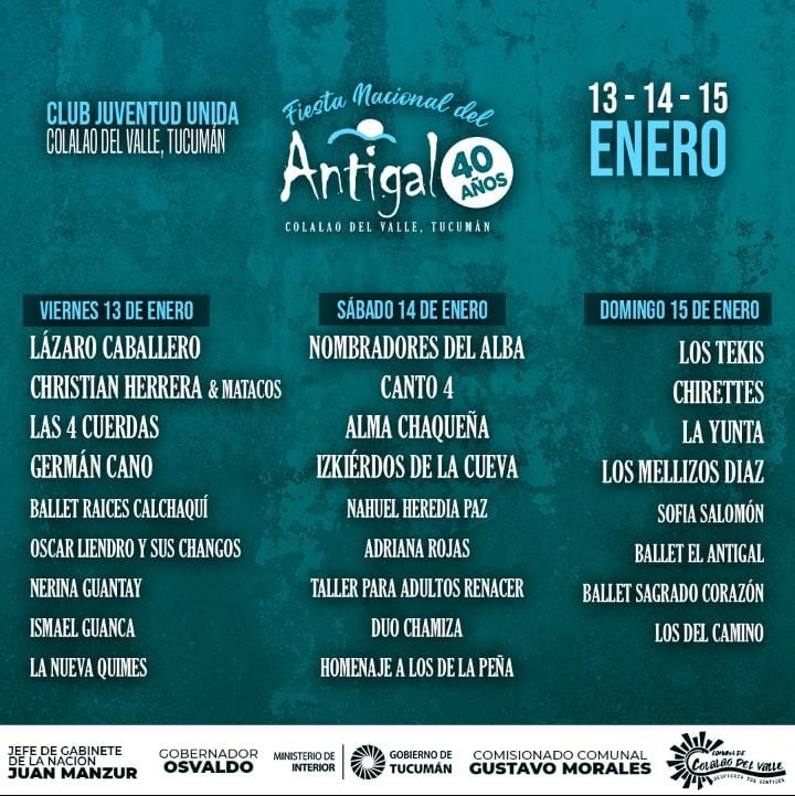 También desde el 13 de enero se vivirá la "Fiesta Nacional del Antigal", en su edición 40, entre otras actividades.