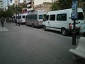 Esta mañana, en plaza Independencia, un grupo de transportistas realizó una protesta para pedir la extensión del plazo para el uso de sus vehículos.