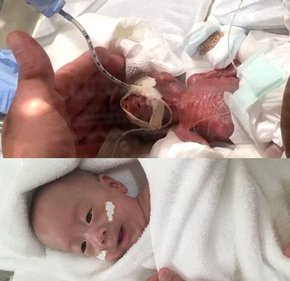 El pequeño nació en agosto, tras solo 24 semanas de gestación, lo normal es que un embarazo dure aproximadamente 40 semanas. Los médicos al darse cuenta de que el niño no crecía en el útero tuvieron que hacer una césarea.