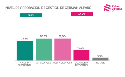 Finalmente, el sondeo incluye un anexo respecto a la gestión de Alfaro en San Miguel de Tucumán donde un 25,3% de los sondeados "aprueba totalmente" la misma; un 28,8% "aprueba algo"; un 29% "desaprueba algo" y un 13,4% "desaprueba todo". Además, considera que el alcalde en un 43,9% "ha hecho lo que esperaba"; un 13% que "ha superado lo esperado"; mientras que un 34,9% reprocha que "ha hecho menos".