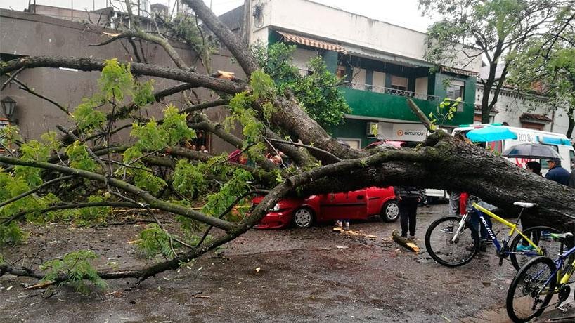 Un árbol de grandes dimensiones cayó este sábado sobre un automóvil Chevrolet Corsa que transitaba por calle Mendoza, a metros de llegar a avenida Salta, en pleno centro de la capital tucumana.