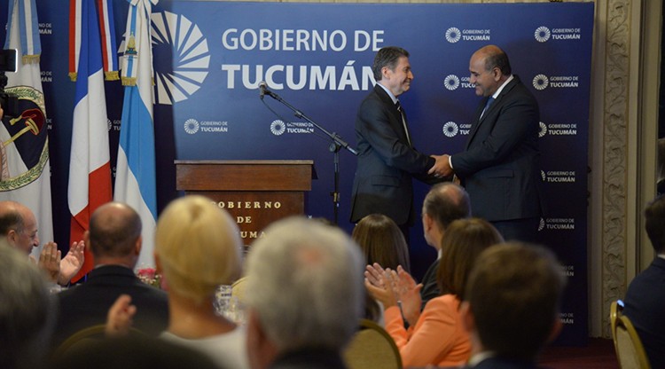 “Con Francia nos une una larga historia, no sólo porque el actual Embajador argentino en ese país (Mario Verón Guerra) es tucumano sino porque tenemos muchos comprovincianos viviendo allí”, sostuvo Manzur durante su discurso de bienvenida, que se realizó en el Salón Blanco del Palacio Gubernamental.