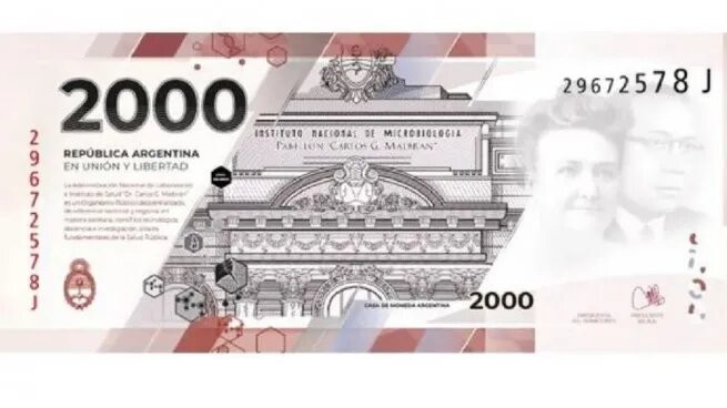 El directorio del Banco Central (BCRA) aprobó la emisión de un nuevo billete de $2.000 que fue anunciado a principios de febrero y se integrará progresivamente a la actual línea del peso."Fue diseñado en colaboración con Casa de Moneda y conmemora el desarrollo de la ciencia y de la medicina en la Argentina", se anunció oficialmente.