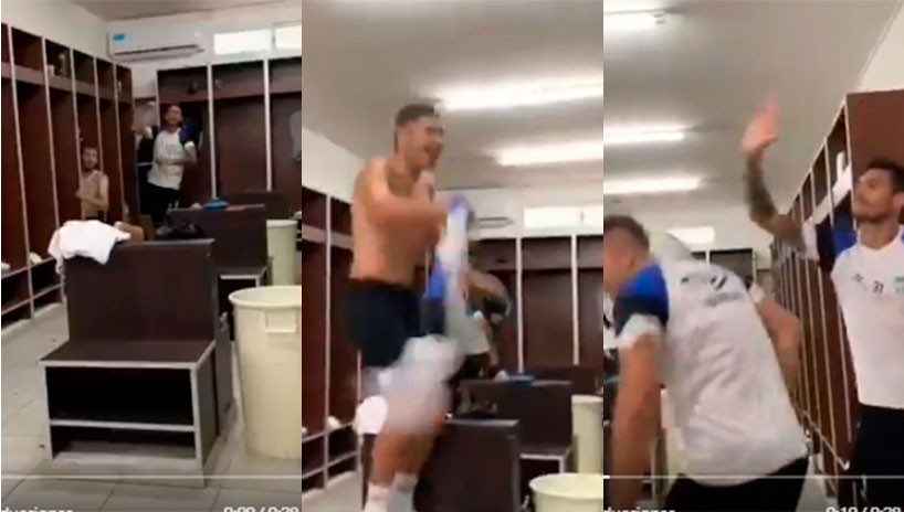 Después de un entrenamiento en el complejo José Salmoriaghi, los jugadores de Atlético empiezan a bañarse y alistarse para volver a casa, cuando de repente suena una canción.