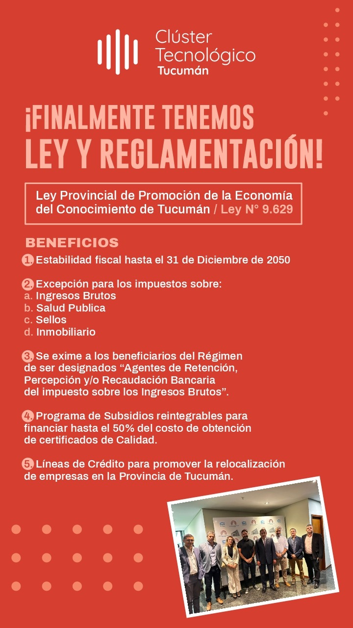 Assaf además aclaró que "esto implica un desafío para la industria porque dentro de los requisitos que tenés, tenés que estar inscripto en el registro nacional de beneficiario de la Ley de Economía del Conocimiento, vos tenés que inscribir en una ley nacional, donde tenés que cumplir un montón de requisitos y después se da el beneficio en Tucumán, lo que implica que las empresas que se inscriban en Tucumán ya van a estar en condiciones y son empresas con potencial de exportación".