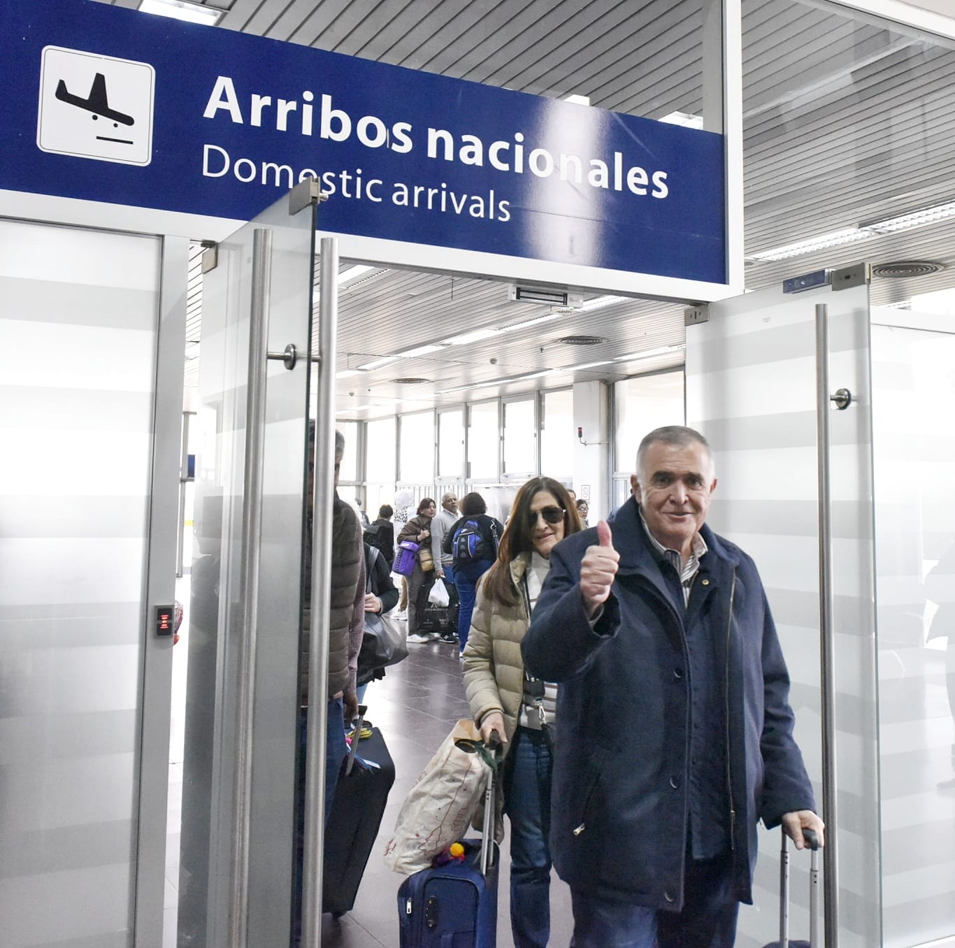 El gobernador electo, Osvaldo Jaldo arribó a Tucumán, luego de las cirugías a las que fue sometido. Destacó el agradecimiento "a todos y todas los que se han preocupado por mi", tanto militantes del oficialismo como de la oposición.